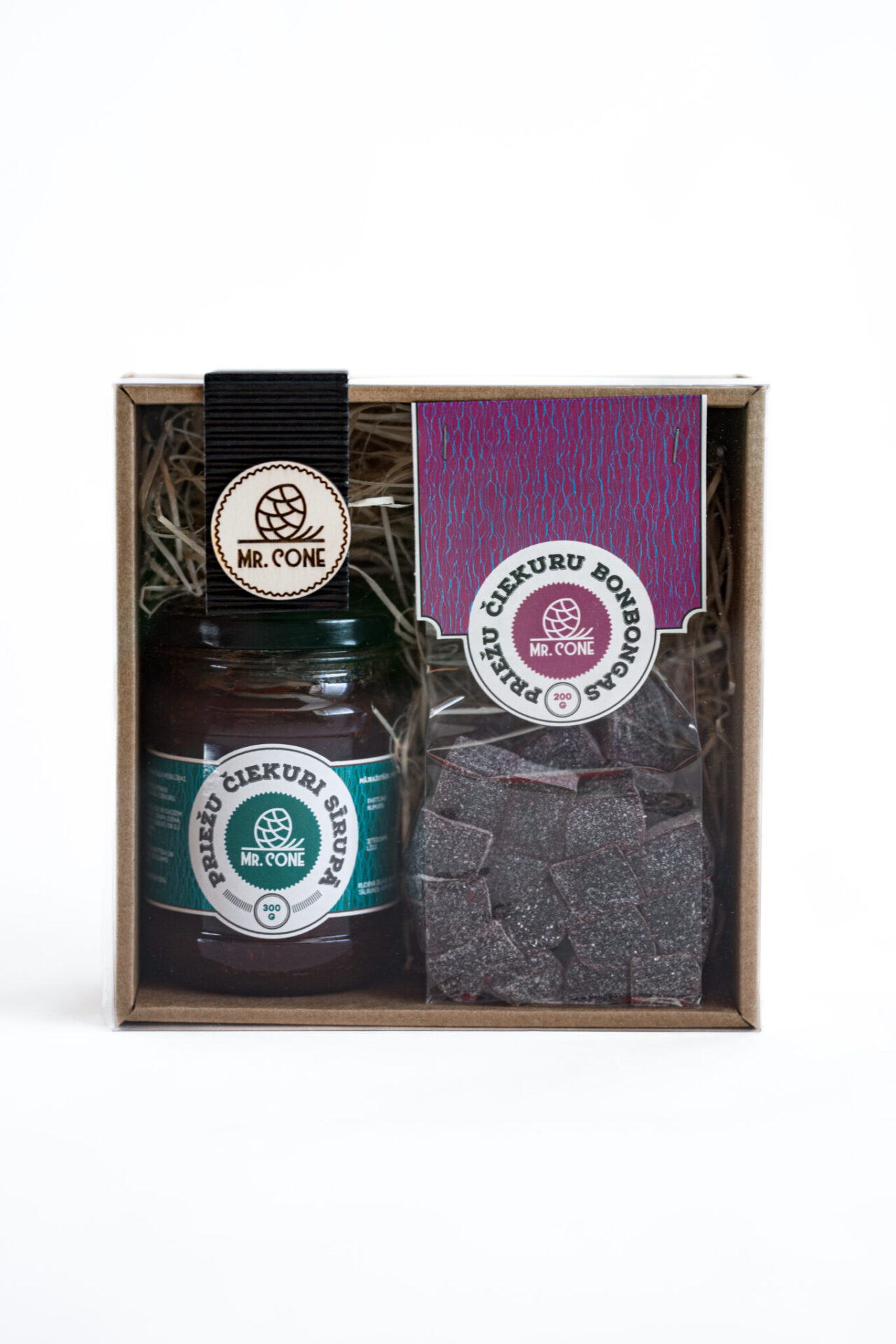 Priežu čiekuru sīrupu dāvanu komplekts. Sīrupiņš imunitātei pie tējas, čiekuriņi vecākiem. Komplektā: Priežu čiekuru sīrups 240ml + Priežu čiekuri sīrupā 300gr. Produkts ražots Latvijā.